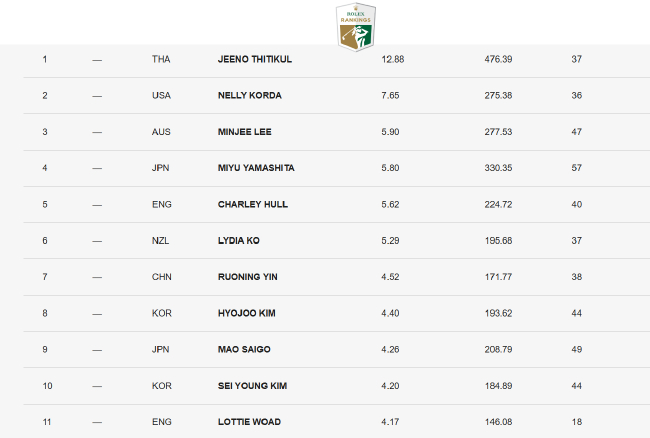 世界前100位選手中,后期亞洲選手占據59席,亞洲殷接近六成。獨領(lǐng)其中,風(fēng)騷韓國(32人)和日本(18人)合計50人,女排寧就占據半壁江山,名最顯示出兩國在高爾夫女子項目上“集團優(yōu)勢”明顯,后期后備人才厚度驚人。除此之外,泰國有5人,中國有4人上榜。
